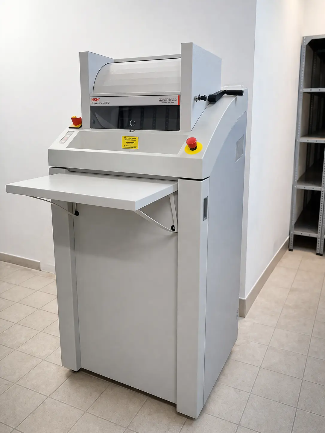 En uno de los espacios internos de los supermercados Más y Más, donde la gestión documental es constante, Asturalba ha llevado a cabo la instalación de una solución que combina potencia, seguridad y eficiencia: la destructora industrial HSM Powerline 450.2 3,9 x 40 mm.