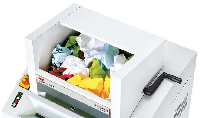 Diseñada para trabajar sin descanso, convierte grandes volúmenes de documentación en partículas seguras de forma continua.