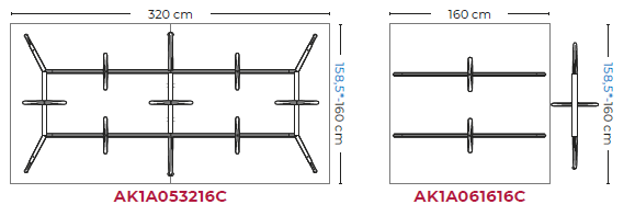 Mesa para sala de reuniones de diseño arquitectónico con estructura de aluminio en 6 acabados y superficie de vidrio en 4 acabados de 160, 240 o 320 cm de ancho, 160 de fondo y 74 de alto